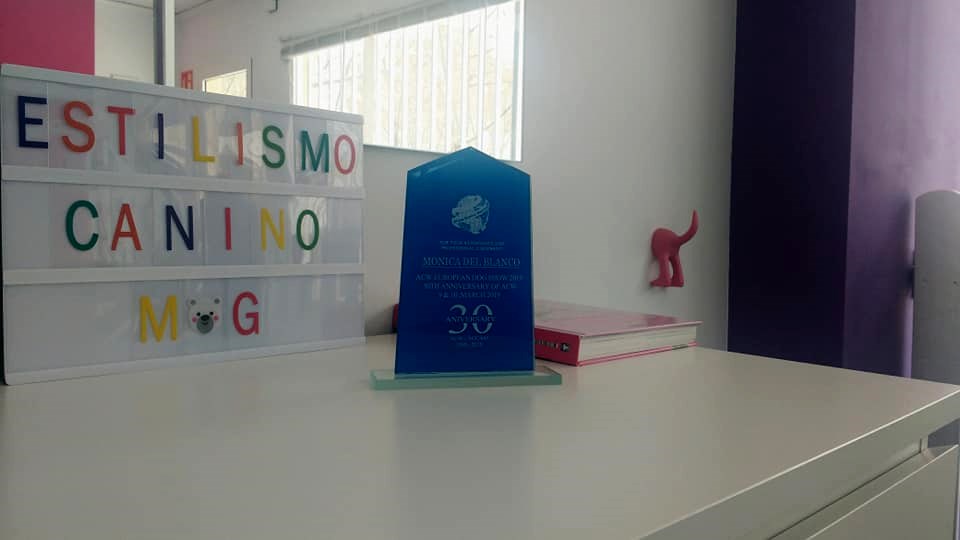 Mónica, fué obsequiada con un trofeo por los miembros de la organización, por la ayuda prestada durante el fín de semana. Un fín de semana, según palabras de nuestra estilista, altamente enriquecedor para ella, para su curriculum, y como no, para su peluquería canina.
