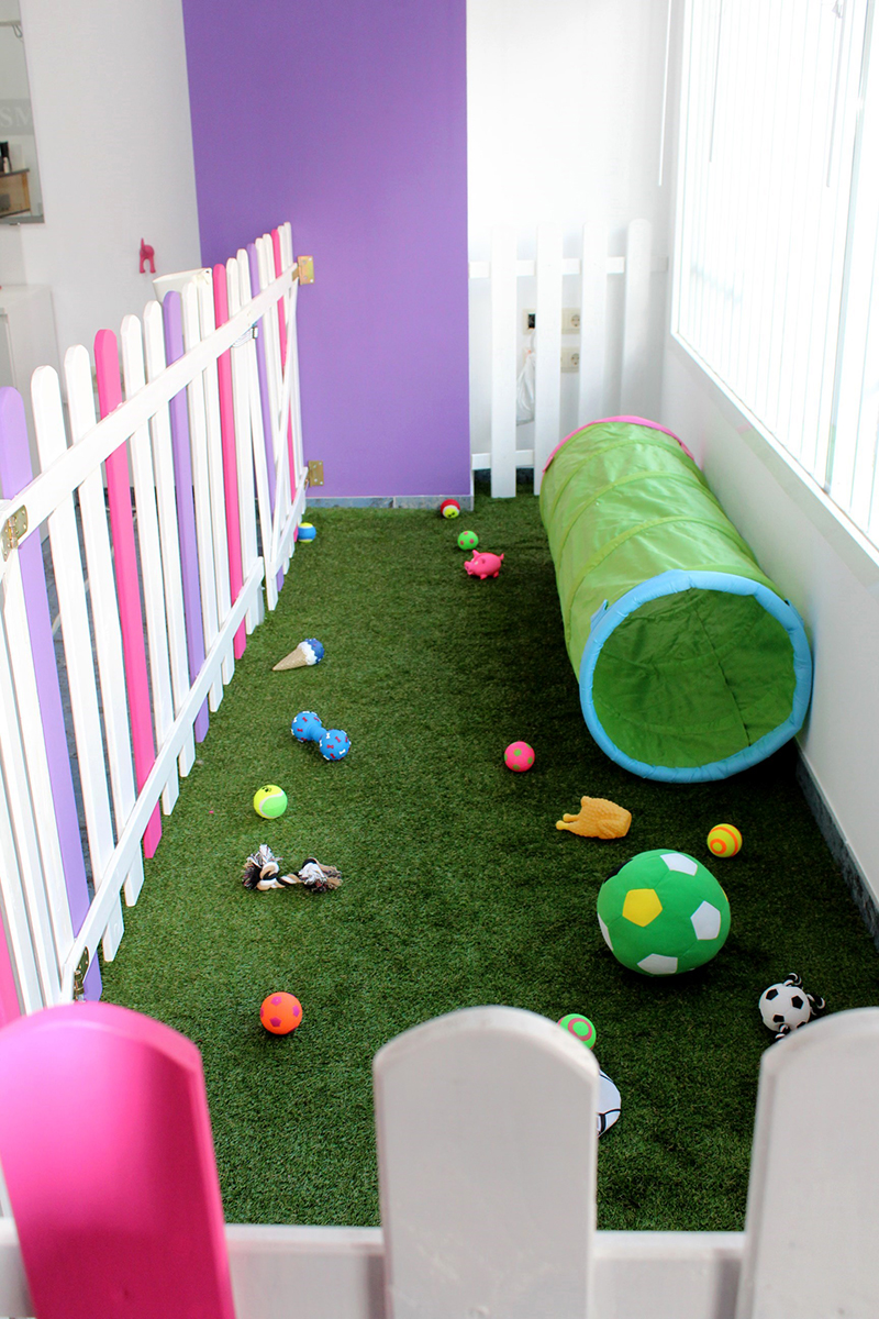 Tenemos zonas bien diferenciadas, dentro de un espacio diáfano, lo que da un ambiente luminoso, claro y fresco, y al mismo tiempo nos permite tener a los perretes un poco controlados.
