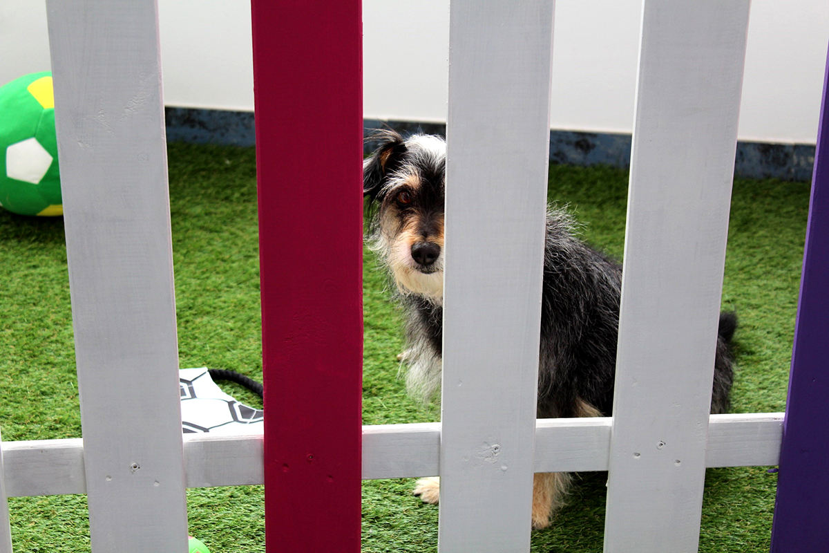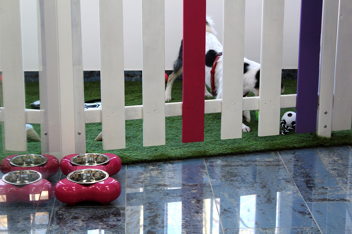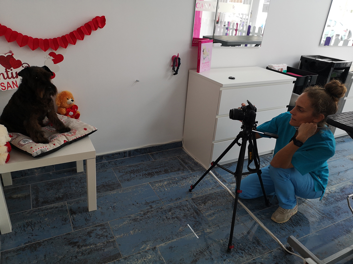 Zona de corte y peinado, con mesas también elevadoras. Parque, con cesped artificial, para que tu perro pueda jugar y esté más tranquilo. Zona de espera acristalada, donde los dueños pueden esperar mientras le realizamos el aseo a su mascota, tomándose un café. Photo call, un rinconcito donde colocar a tu mascota y hacerle una foto, la mayoría de veces, graciosa, y que a todos nos gusta guardar.