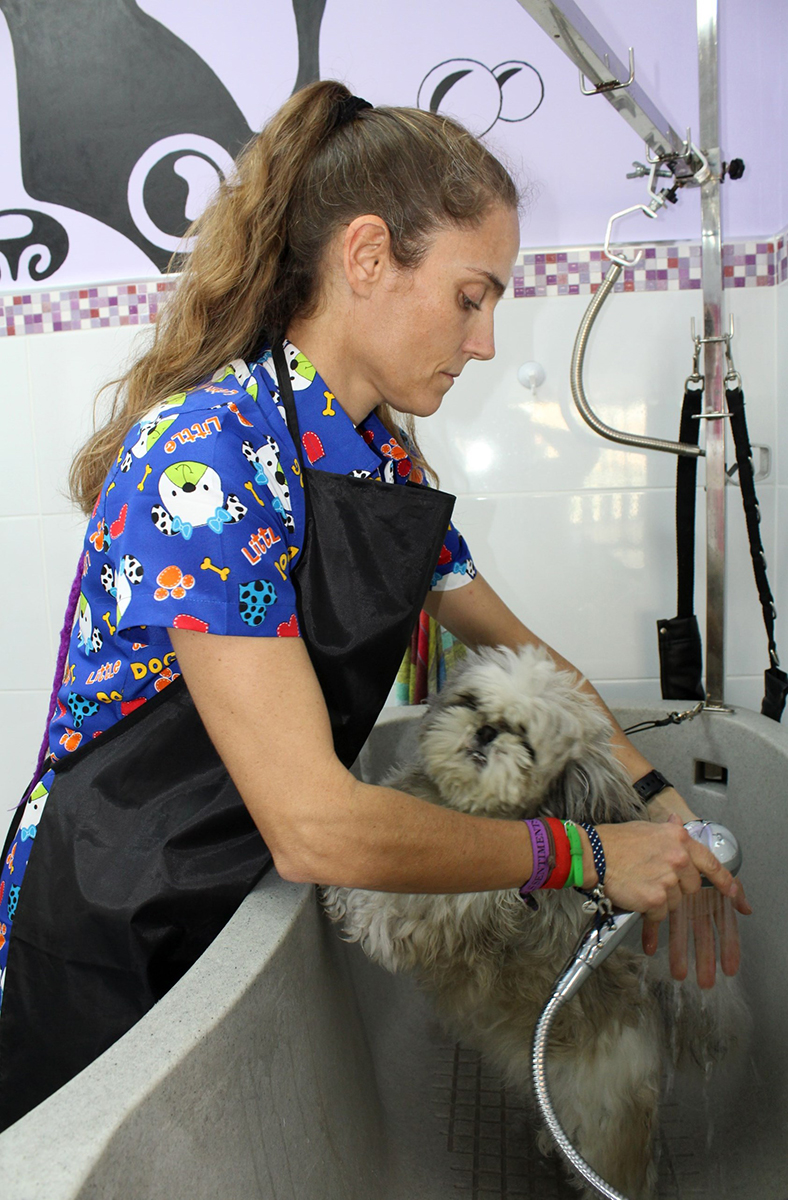 Contamos con una zona de baño, aseo y secado, con una bañera elevadora, para facilitar nuestro trabajo y comodidad de tu mascota.